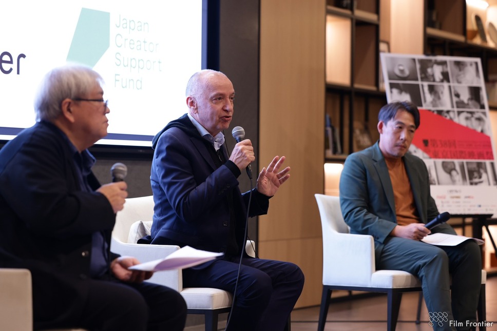 11/2(日)に開催された育成対象者発表会では、1期の選抜者である中西 舞監督、滞在型企画開発の山下つぼみ監督が登壇、これまでの活動を報告しました。その後、ゲストとして登場したクリスチャン・ジュンヌ氏(カンヌ国際映画祭代表補佐兼映画部門ディレクター)、選考委員の一人でもある石川慶監督、東京国際映画祭プログラミングディレクターであり、「フィルム・フロンティア」実写プログラム統括アドバイザーの市山尚三による、クロストークを経て、市山尚三氏より2期の選抜者となる5名を発表しました。